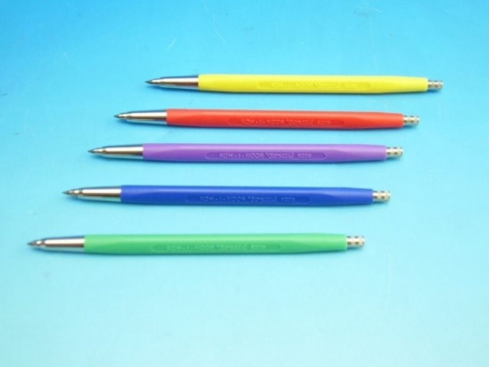 tužka mechanická 2,0 5209 Tužka mechanická padací, kombinace kov-plast, je určena pro běžné psaní a kreslení tuhou pr. 2 mm. Tuha se posunuje stisknutím knoflíku hrotítka v nakloněné poloze tužky, tím dojde k otevření kleštiny a vysunutí tuhy dle potřeby.. Tuhu lze hrotit, hrotítko je umístěné v knoflíku, který se odšroubuje. Plášť tužky je plastový tříboký, mechanika je kovová. Tužka nemá klip. Balení je skupinové, assort 5 barev - žlutá, zelená, modrá, červená a violet, 20 ks volně vložených do kartonové krabičky.