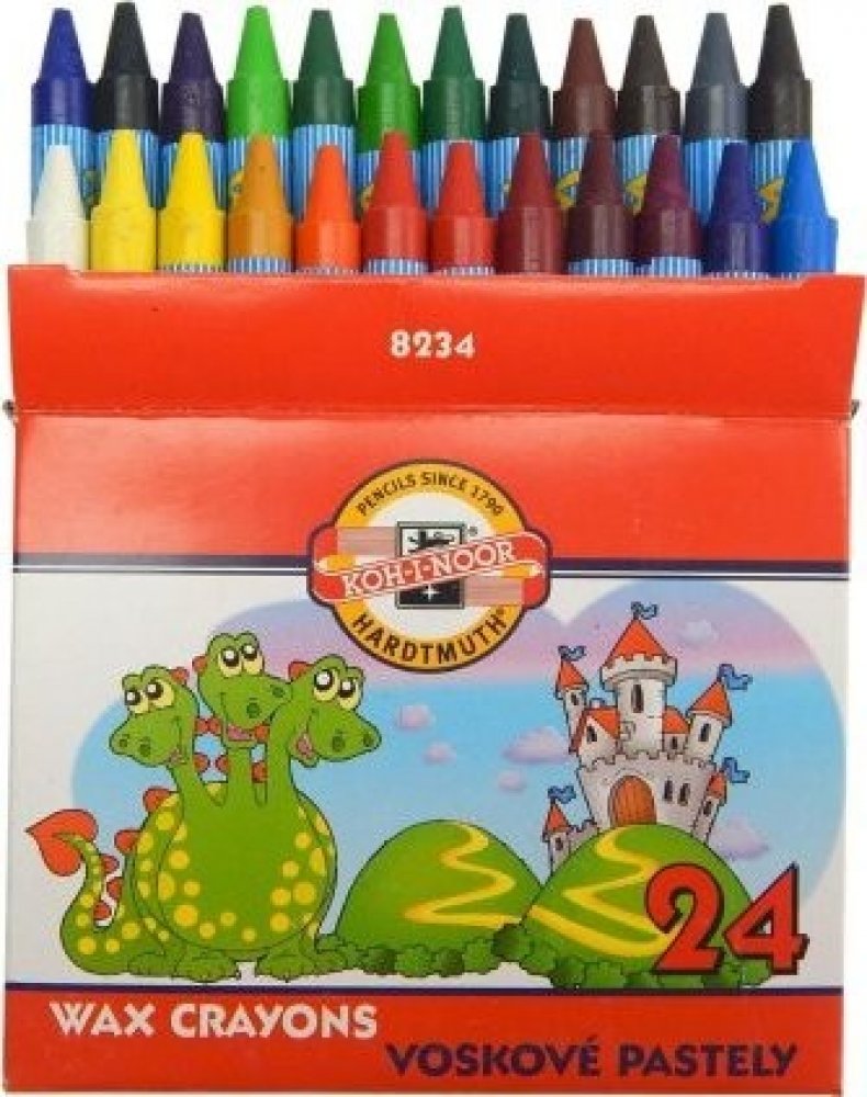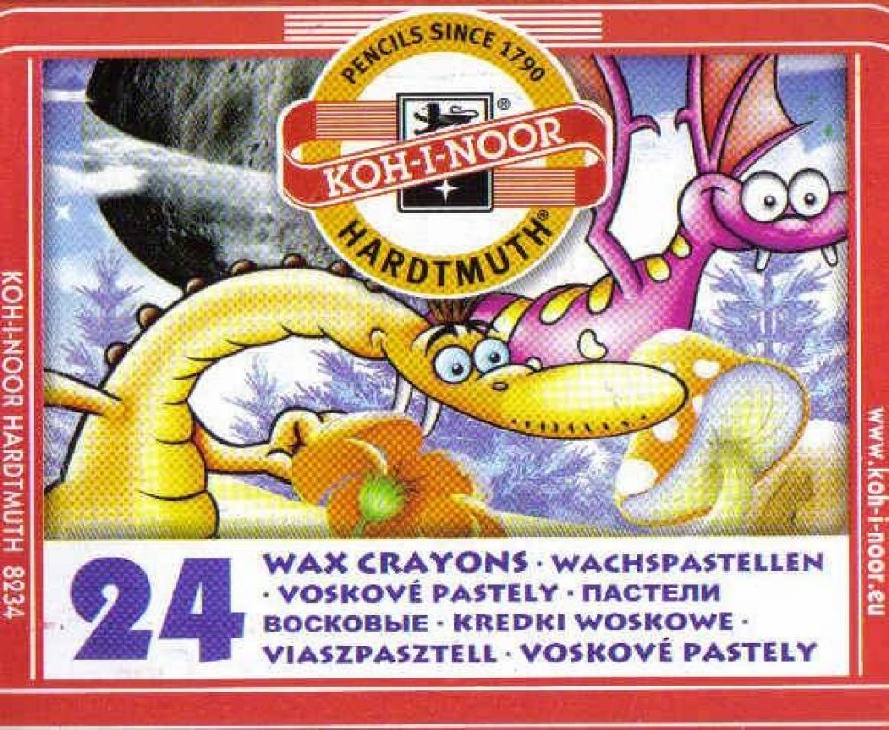 Výrobek se používá, jako souprava voskovek určených pro školní, aranžérské a umělecké kreslení – 24 ks souprava. Souprava 24 kusů kulatých voskovek se zašpičatělým koncem o rozměrech O 7,8 mm, délka 80 mm, kde každá voskovka je obalená zavinovacím štítkem modro-bíle pruhovaným se žlutým textem WAX CRAYON. Voskovky jsou vložené hroty k eurozávěsu, do kartonové potištěné krabičky s motivem draka. Ro...