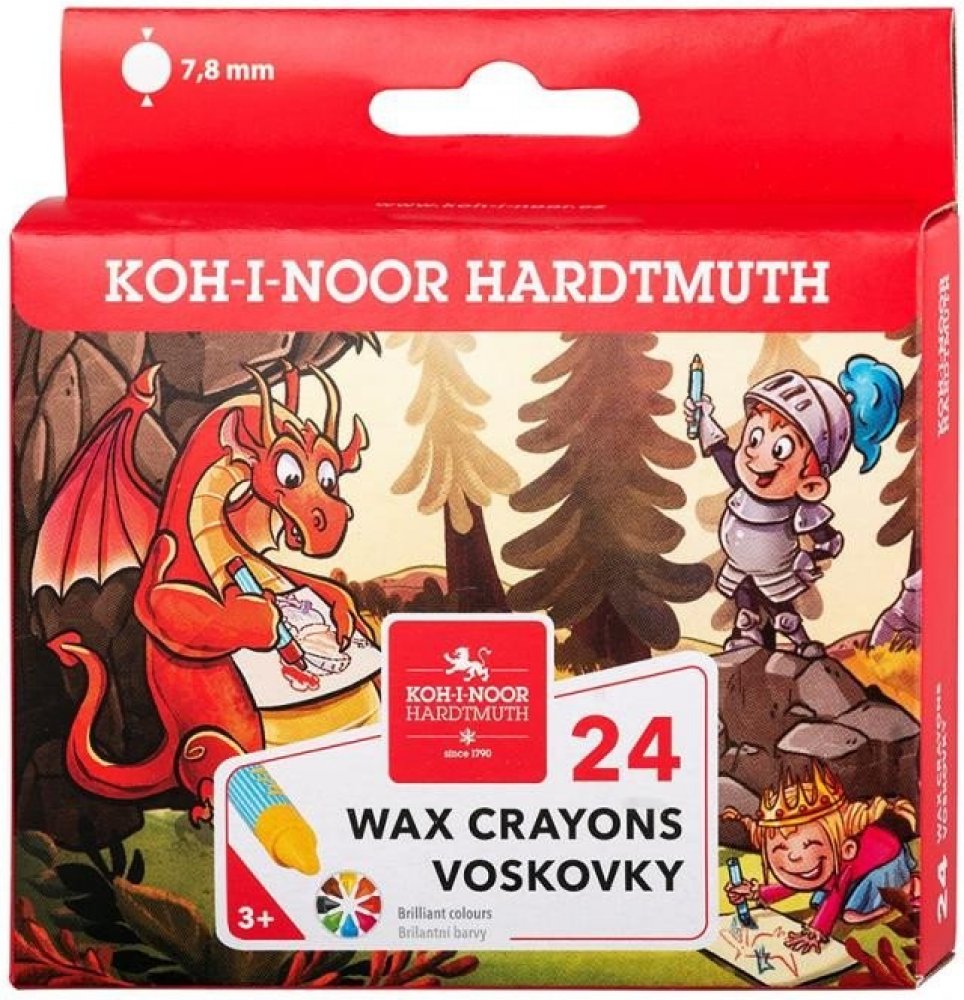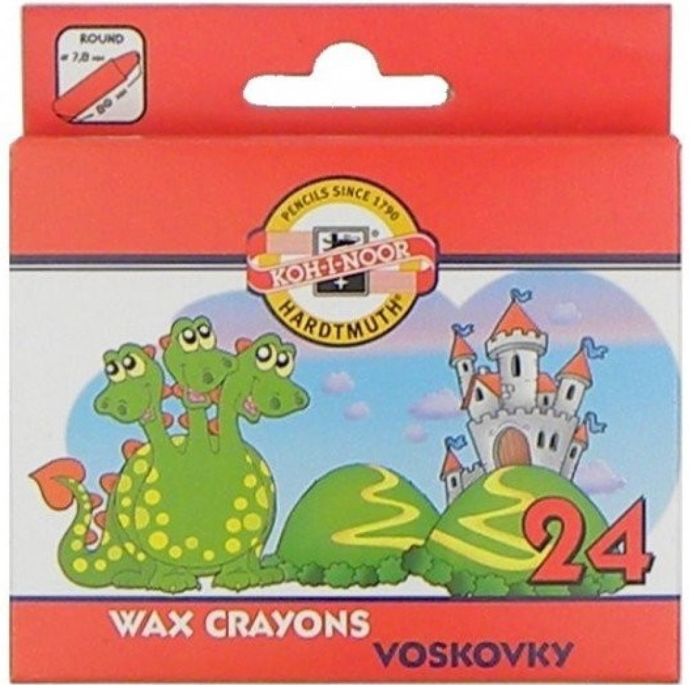 Výrobek se používá, jako souprava voskovek určených pro školní, aranžérské a umělecké kreslení – 24 ks souprava. Souprava 24 kusů kulatých voskovek se zašpičatělým koncem o rozměrech O 7,8 mm, délka 80 mm, kde každá voskovka je obalená zavinovacím štítkem modro-bíle pruhovaným se žlutým textem WAX CRAYON. Voskovky jsou vložené hroty k eurozávěsu, do kartonové potištěné krabičky s motivem draka. Rozměr krabičky 113 x 98 x 18 mm. S ohledem na duševní a fyzické schopností dítěte může být výrobek vkládán do úst a ukousnut/odlomen. Dítě ukousnutou/odlomenou část spolkne. Spolknutá část projde trávicím traktem bez zjevného ovlivnění traktu.