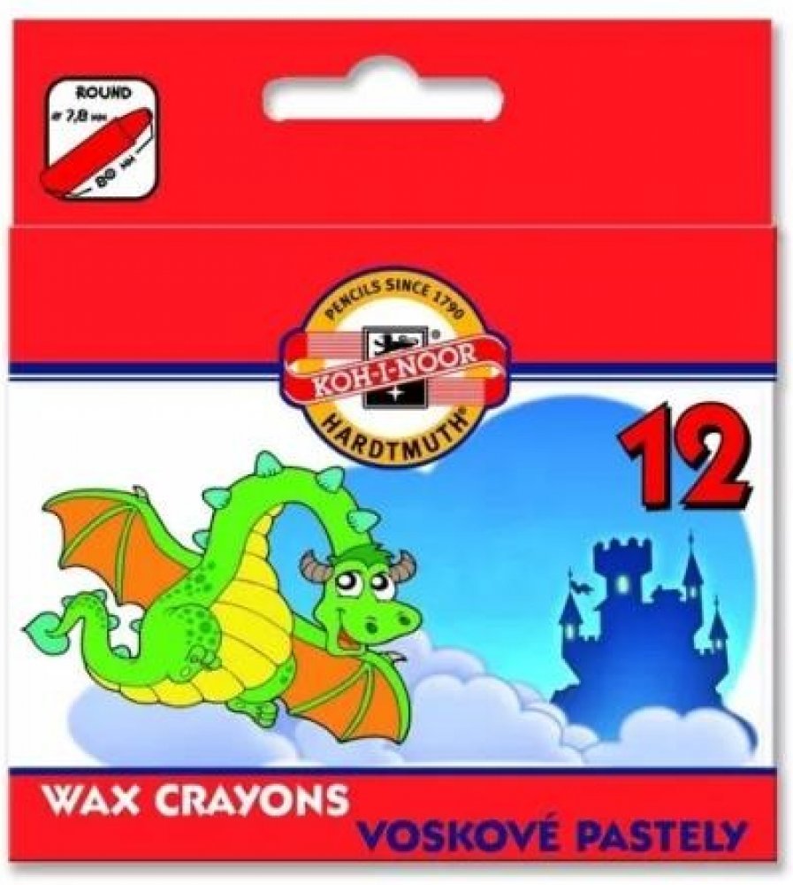 Voskovky Koh-i-noor  8232/12 kulaté tenké 12 ks. Souprava voskovek s kulatým tělem v papírové krabičce. Balení obsahuje 12 ks (barev). Vlastnosti produktu: - Kulaté tělo - Délka voskovky 80 mm, průměr 7,8 mm.