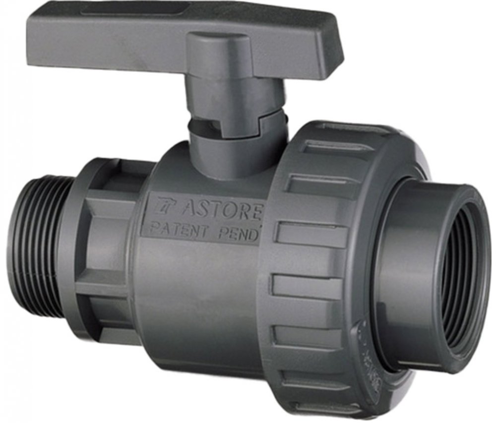 Kompaktní ventil kulový s dvěma závitovými spoji a dvěma převlečnými šroubeními z PVC slouží k regulaci proudění kapaliny v trubních rozvodech v místě, kde je potřeba příležitostně zastavovat tok kapaliny v potrubí.