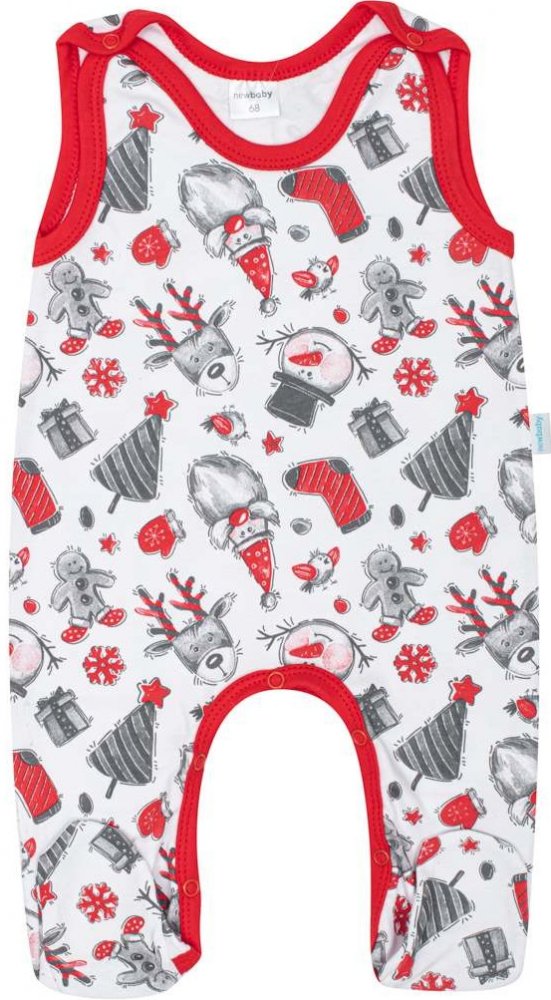 Dupačky jsou zdobeny roztomilým vánočním motivem. Zapínání na cvočky na ramínkách a mezi nožičkami usnadňuje oblékání a přebalování miminka.