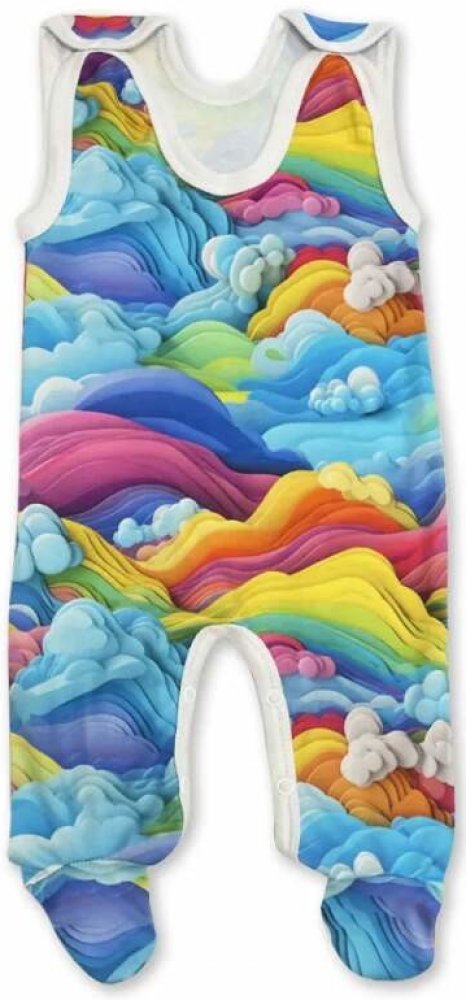 dupačky jsou vyrobené z kvalitní bavlny v duhových barvách, zapínání na ramínkách a mezi nožičkami na baby druky - usnadňuje pohodlné oblékání i přebalování novorozených miminek.