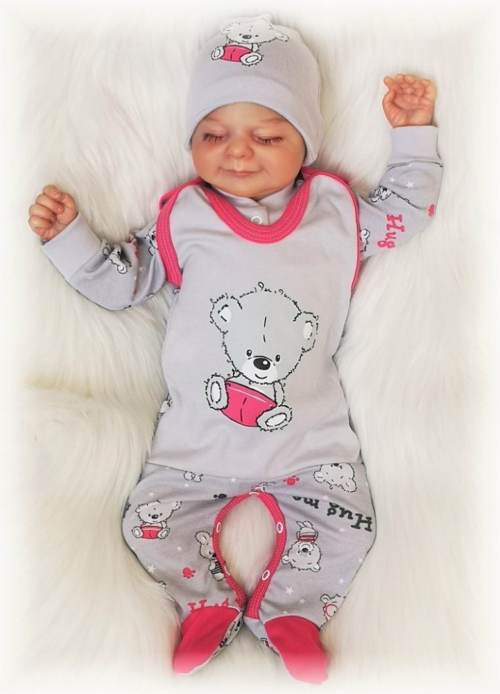 dupačky jsou vyrobeny z příjemné jemné bavlny, zapínání na ramínkách a mezi nožičkami na baby druky - usnadňuje pohodlné oblékání i přebalování miminek. Dupačky zdobí obrázek roztomilého medvídka.