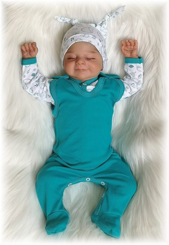dupačky jsou vyrobené z kvalitní jemné bavlny v krásné barvě mořský tyrkys, zapínání na ramínkách a mezi nožičkami na baby druky - usnadňuje pohodlné oblékání i přebalování novorozených miminek.