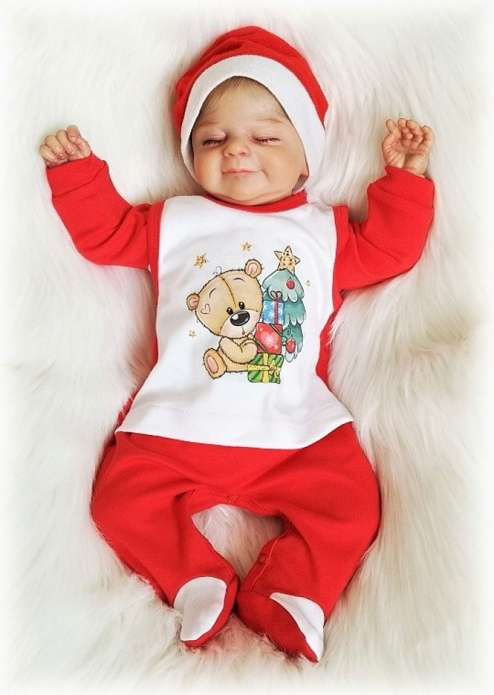 bavlněné dupačky s roztomilým vánočním medvídkem, zapínání na ramínkách i mezi nožičkami na baby druky.