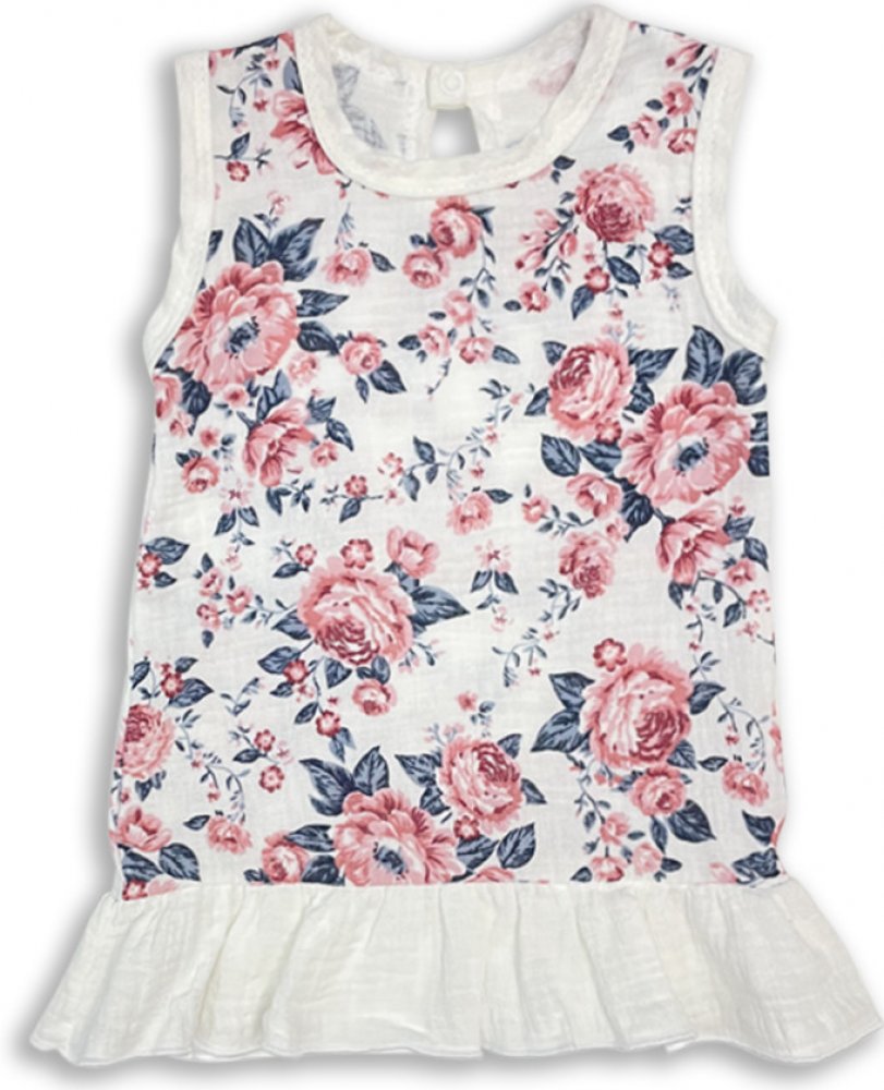 krásné vzdušné šaty pro miminko, zapínání vzadu na knoflíček. Krásný vzor růžiček v kombinaci se smetanovou barvou. Vynikající materiál, kterého hlavní výhodou je jeho prodyšnost. Otevřená vazba tkaní a lehká struktura umožňuje mušelínu dýchat a zajišťuje dostatečnou cirkulaci vzduchu a tím snižuje riziko přehřátí. Ideální materiál pro horké letní dny.