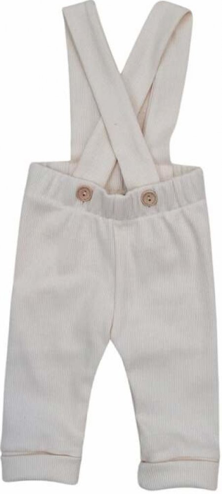 Žebrované bavlněné kalhoty se šlemi pro miminko krém. vyrobeny z příjemné pružné bavlny, dokonale pohodlné oblečení pro vaše dítě. Nohavičky lze dle potřeby ohrnout, šle mají dvojtupňové zpnutí na knoflíčky, které lze dle potřeby i přešitím posunout.