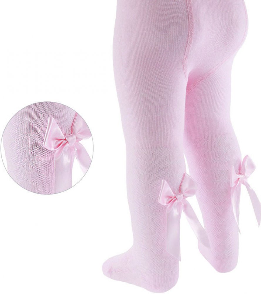 Punčocháče pro miminka zdobené mašličkou s jemným vzorem.