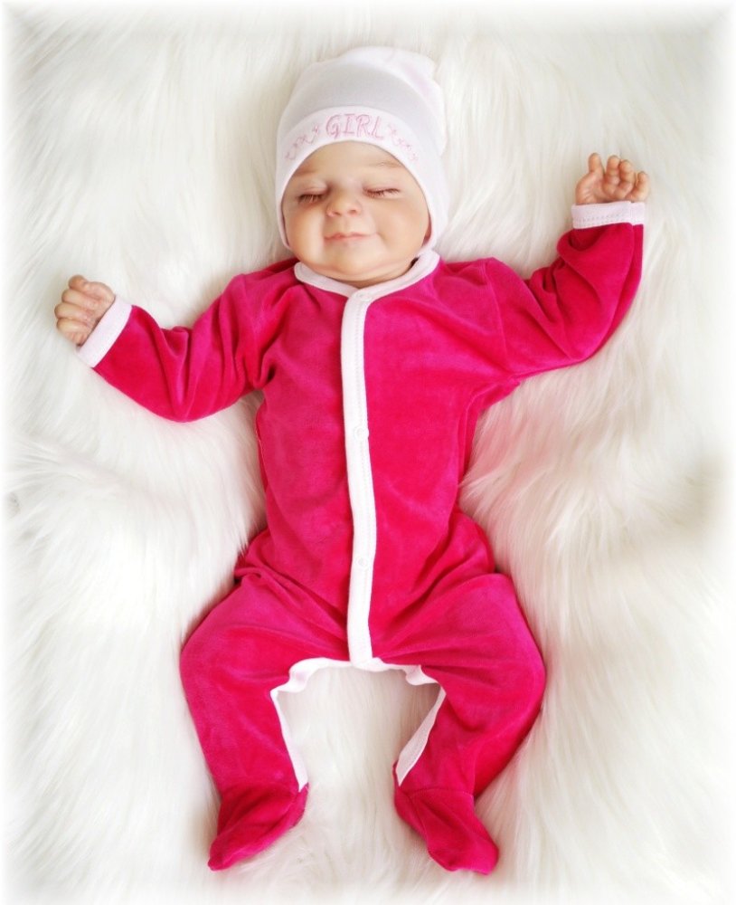 overálek je vyroben z příjemného jemného sametu, zapínání uprostřed na baby druky - usnadňuje pohodlné oblékání i přebalování novorozených miminek - není nutné přetahovat přes hlavičku. Overal velmi vhodný pro chladnější období.