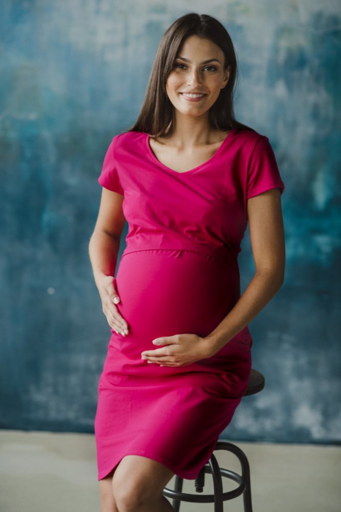 Noční košile typu Homewear. Vysoce kvalitní bavlna se přizpůsobí těhotenskému bříšku. Dvouvrstvý vzhled umožňuje pohodlné kojení.