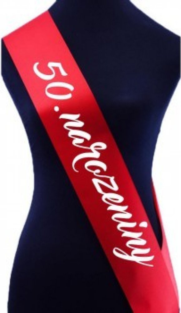 Narozeninovou šerpu k 50. narozeninám. Už se blíží Váš velký den? S touto šerpou každý pozná, kdo je hlavní hvězdou večera na narozeninové párty. Vaše narozeninová party bude s toutou šerpou nezapomenutelná. Taftové šerpy v šíři 100 mm a délce cca 2000 mm dodáváme standartně zastřižené entlovacími nůžkami zabraňující třepení šerpy.