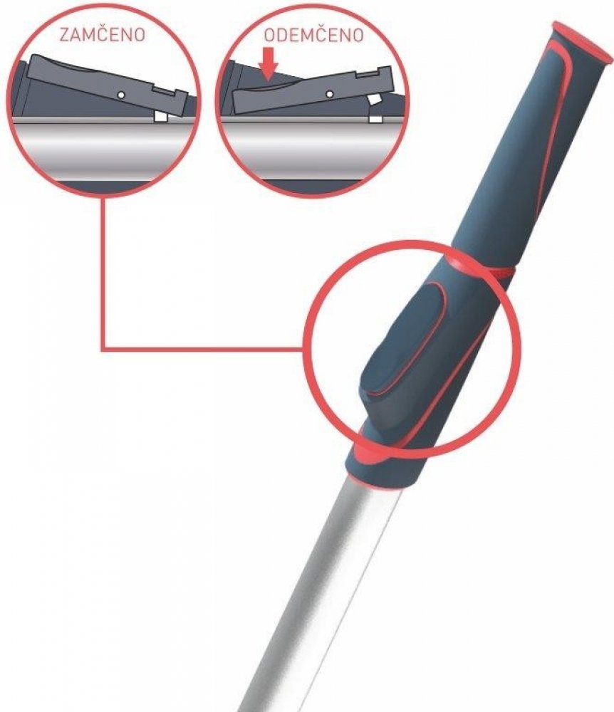 - Teleskopická tyč je tvořena dvěma díly zasunutými do sebe, které se nastavují dle potřeby na délku 2,4 - 4,8 m zesílená