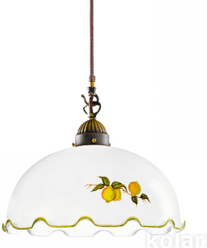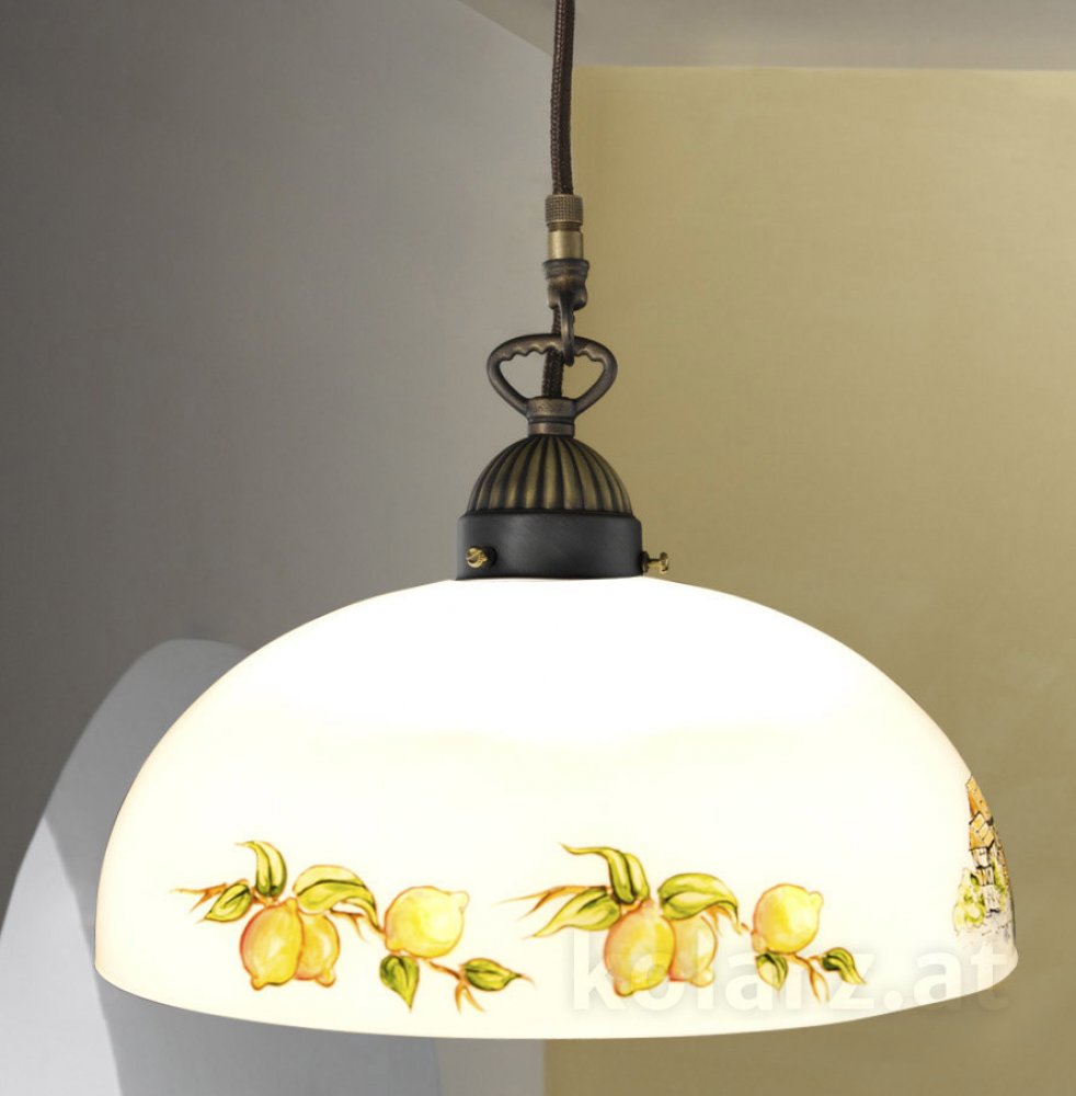 Rustikální závěsné svítidlo ze série NONNA vás uchvátí pečlivě propracovanými kovovými prvky v barvě staré mosazi, které mají velmi elegantní vzhled.Skleněné stínidlo nejvyšší jakosti je ručně malováno dekoracemi v podobě citrusových plodů a spodní zelenou linkou.Pro osvětlení chalupy, chaty i stylové restaurace doporučujeme tato harmonické svítidla z kolekce Kolarz Nonna.Jedinečný rustikální prve...