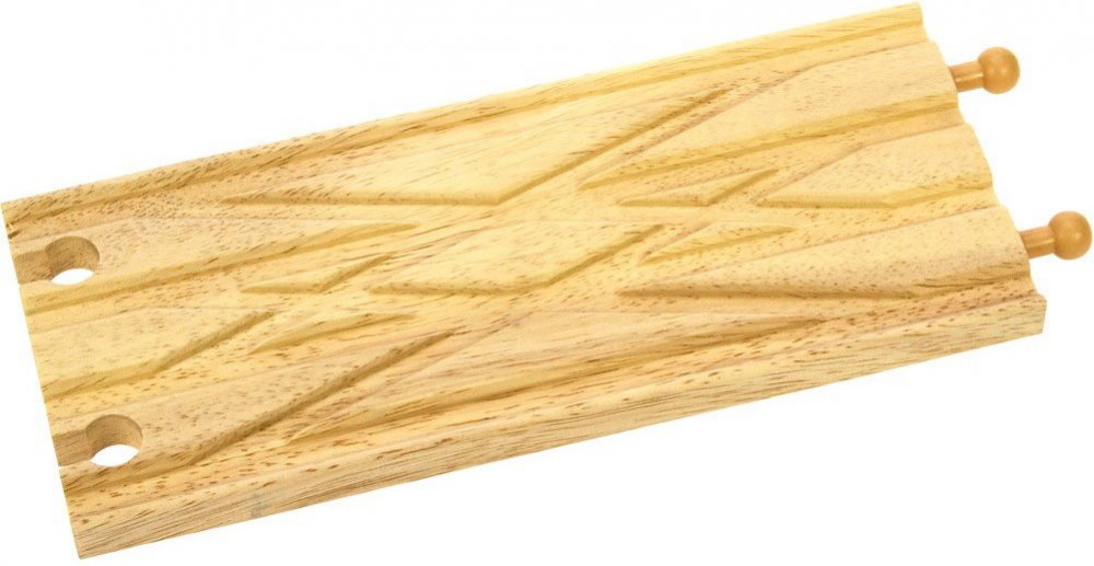 Někdy se vlaky potřebují dostat zpět na tu správnou kolej. To je důvod proč do své sestavy zařadít toto křížení tratí. Oboustranné křížení se připojuje ke dvěma paralelním kusům dráhy, vlak pak najíždí a plynule křižuje na vedlejší dráhu. Umožňuje pak vláčkům najet na jakoukoli dřevěnou kolej, která vede do správných stanic nebo míst. Držte svoje vláčky na těch správných kolejích.