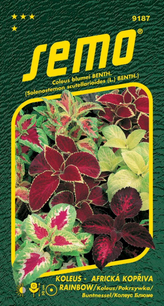 Uživatelé také hledali Koleus (africká kopřiva) Rainbow (směs) Koleus (Africká kopřiva) - Rainbow 0,15g Koleus (Africká kopřiva) Rainbow Mixture SEMO KOLEUS AFRICKÁ KOPŘIVA - RAINBOW 0.15 g