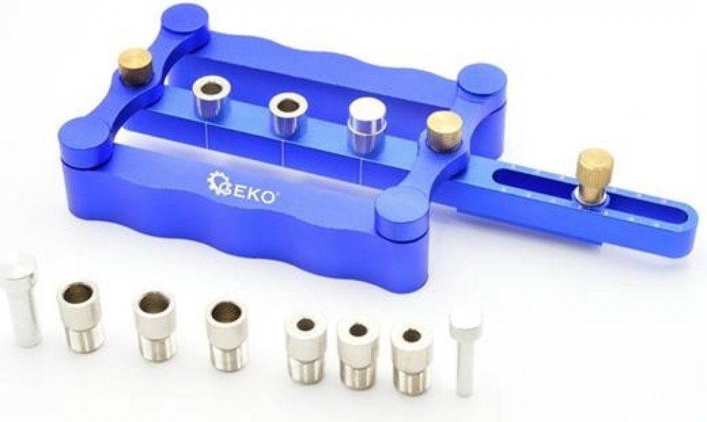 Nástroj určený k vytváření kolíkových spojů dřevěných dílů a dílů vyrobených z materiálů na bázi dřeva. Šablona umožňuje zhotovení otvorů na hranách a v rovině. Tělo nástroje je vyrobeno z hliníkové slitiny a polohovací pouzdra z kalené oceli.Obsah balení:1x šablona3x ocelové pouzdro o průměru 6,8 a 10 mm3x zaslepovací zátky o průměrech 6,8 a 10 mm