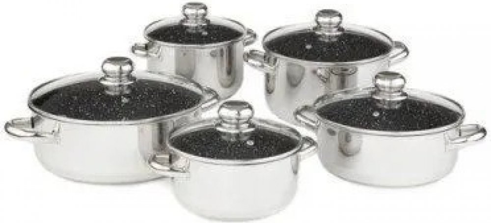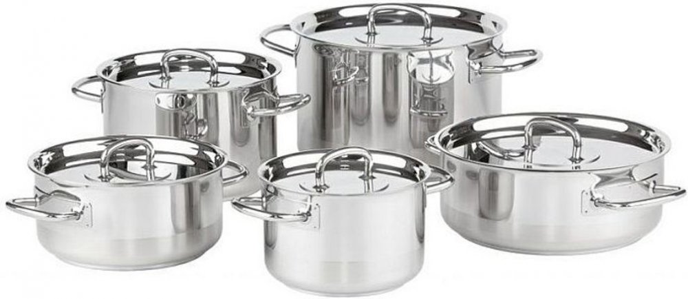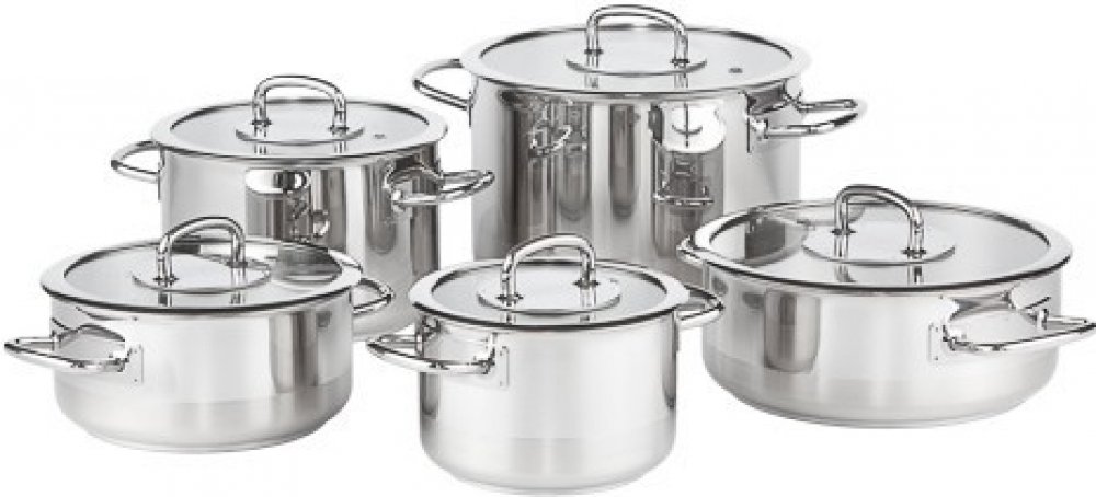 Hrnce a rendlíky této sady mají do ruky padnoucí krásné úchyty a leštěný povrch nádobí doplněný o broušenou spodní část. Předností sady není jen elegantní vzhled, ale i mimořádná kvalita ho materiálu a dokonalé řemeslné zpracování. Nádobí je vyrobeno z nerezové potravinářské oceli CrNi18/10 pro 100% zdravotní nezávadnost z pevného plechu tloušťky 0,8 mm. Akumulační sendvičové dno A-THERM INDUCTION...