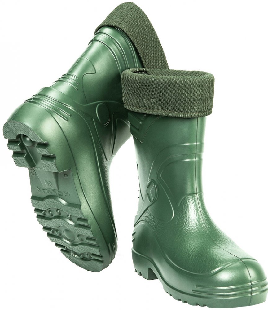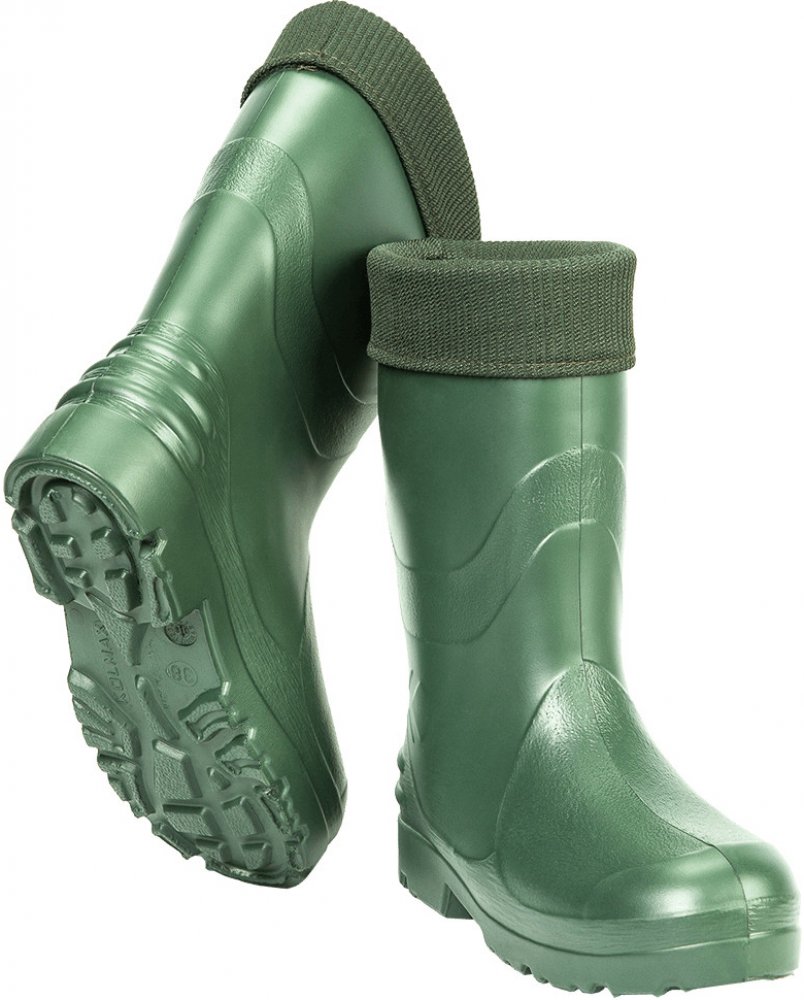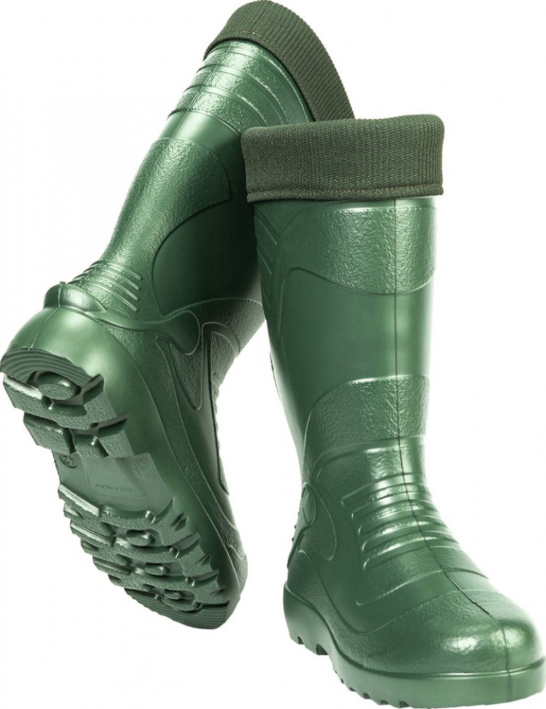 Rybářské holínky vyrobené z materiálu EVA. Tento mareriál je velmi lehký a vyznačuje se výbornými termoizolačními vlastnostmi. Je mimořádně odolný proti mrazu -30 stupňů Celsia, chrání před vlhkostí a chladem a díky vynikajícímu odpružení zajišťuje příjemný komfort a pohodlí pro vaše nohy. V ceně výrobku je zahrnuta i vyjímatelná vložka, která zajišťuje v případě potřeby jednoduché vysoušení boty.