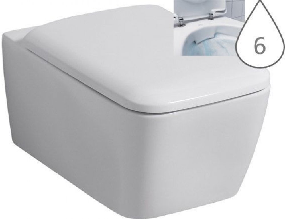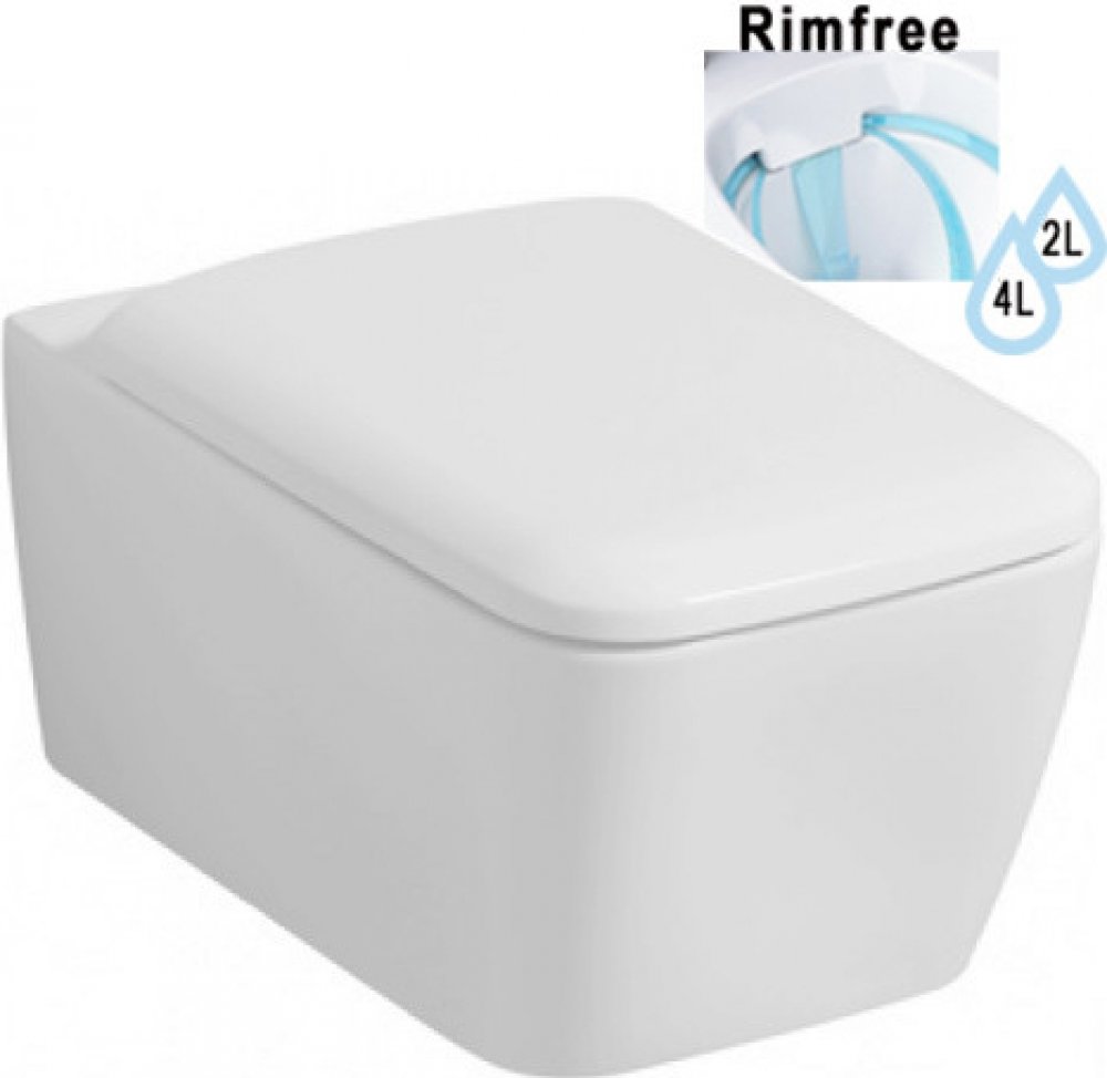Kolo vodorovný závěsné bezokrajové keramické hranaté 54 cm bílé 2 / 4 l 35 cm