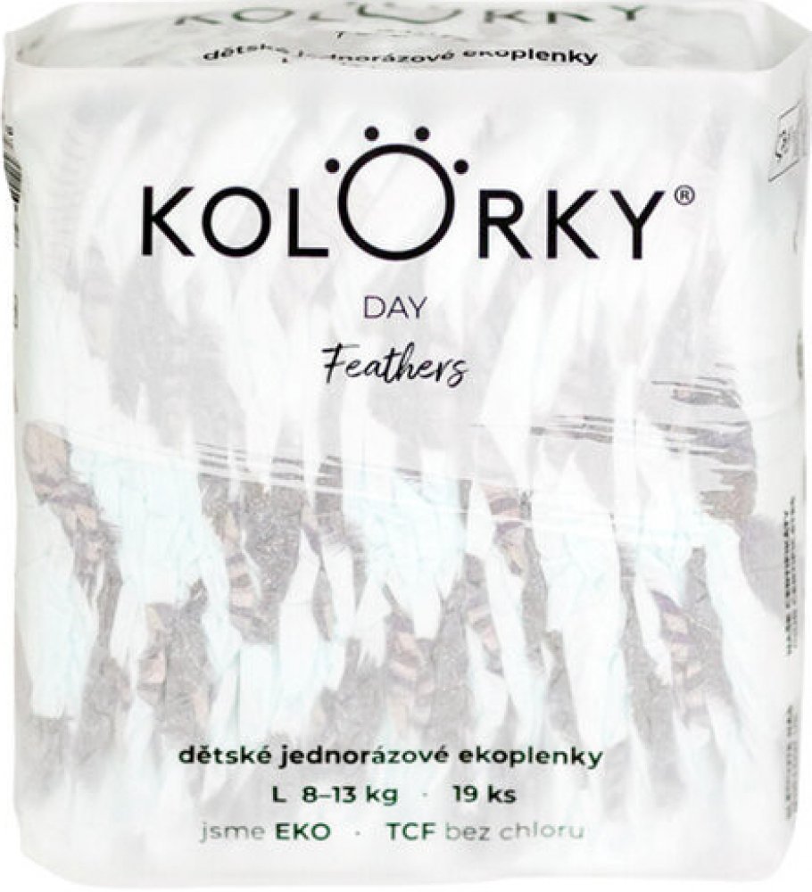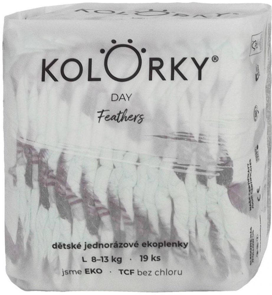 KOLORKY DAY myslí na pokožku vašeho miminka i přírodu kolem sebe. KOLORKY jsou eko, protože jsou vyrobeny z přírodních a obnovitelných materiálů, neobsahují chlor, ftaláty, latex ani parfémy, takže nedráždí citlivou dětskou pokožku a nevyvolávají alergie. Naopak před vznikem opruzenin chrání dětskou pokožku proužky z přírodní Aloe vera.