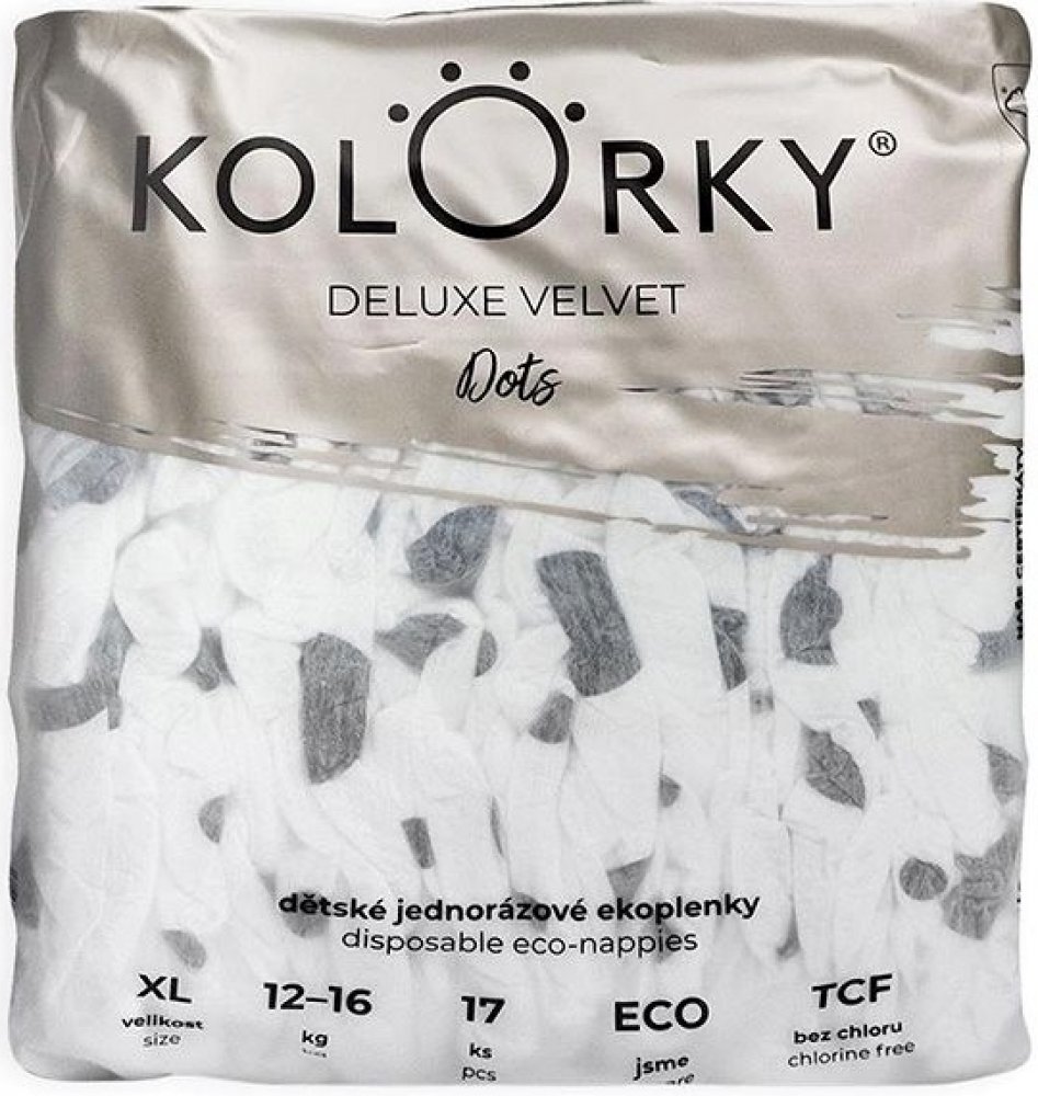KOLORKY DELUXE VELVET jsou unikátní svým sametovým povrchem, který přináší vašemu miminku ještě příjemnější pocit z nošení plenek. Díky indikátoru vlhkosti přesně poznáte, kdy je potřeba miminko přebalit. KOLORKY jsou eko, protože jsou vyrobeny z přírodních a obnovitelných materiálů, neobsahují chlor, ftaláty, latex ani parfémy, takže nedráždí citlivou dětskou pokožku a nevyvolávají alergie. Plenk...
