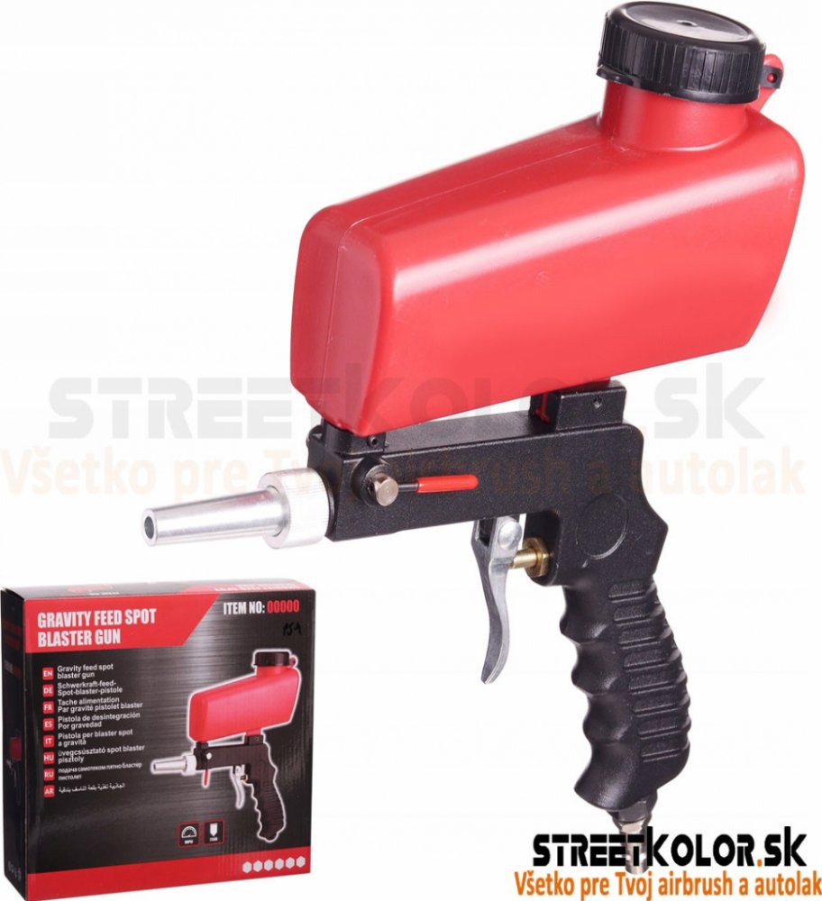 Pískovací pistole se používá velmi snadno díky nízké váze a ergonomicky tvarovanému tělu pistole. Součástí balení je také speciální abrazivum (oxid hlinitý) díky čemuž Vám vaše práce půjde ještě rychleji a účinněji. Pískovací pistole je ideální pro loupání nátěru, odstraňování rzi a dalších čistících pracovních míst. Vzhledem k malé velikosti trysky a horní nádrže písek tryská s vysokou hybností, což má za následek rychlejší čistící účinek. Je určena především pro práci v hrubém modelářství, čištění forem a modelů a odstraňování nečistot z malých oblastí. Díky horní nádržce písek samohybně padá do trysky díky čemuž má malou spotřebu vzduchu. Pískovací pistole tím pádem může pracovat s malými kompresory s tlakovou nádobou od 24l.