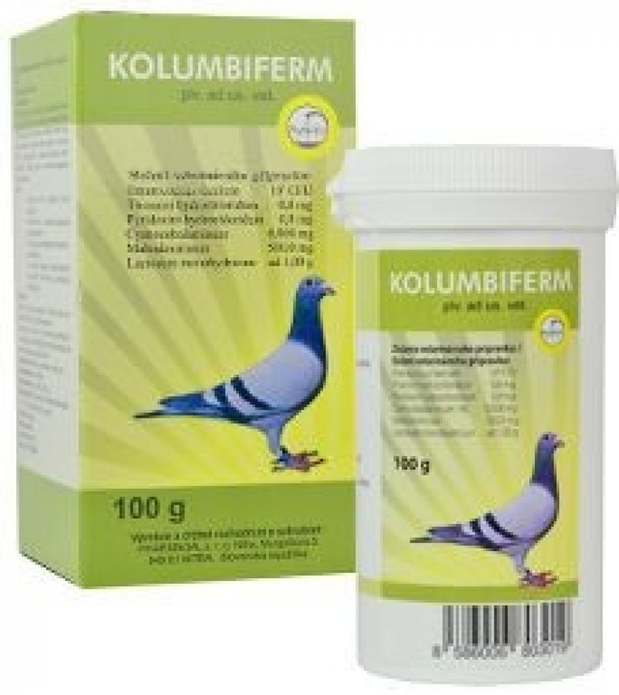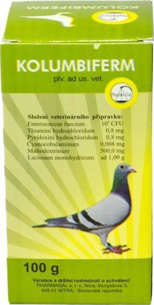 Voděrozpustný prášek s obsahem živé probiotické kultury mikroorganizmu Enterococcus faecium a vitamínů skupiny B určený pro denní a pitný režim závodících holubů a jako aditivum krmného a pitného režimu mladých a chovných holubů na podporu růstu a množení přirozené střevní mikroflóry a inhibice růstu a množení patogenních mikroorganizmů.