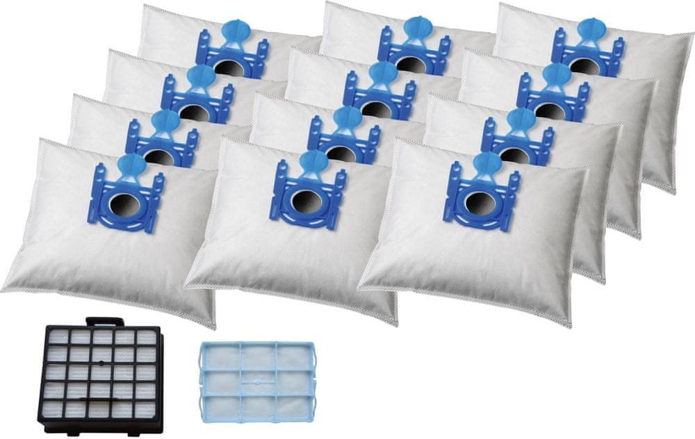 Výhodná sada příslušenství obsahující 12ks sáčků KOMA BS67PL včetně HEPA filtru KOMA HFBS1 a motorovým filtrem KOMA VFBS1 do vysavačů BOSCH Typ G. Součástí balení jsou také 3 univerzální mikrofiltry. Sáčky jsou vyrobené antibakteriální netkané textilie. Vhodné také pro vysavače KRUPS, PRIVILEG, SIEM