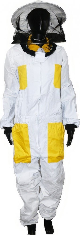Komplexní barevná včelařská kombinéza s kloboukem velikost: 48–68, chránící celou vaši postavu. Včelařská kombinéza je vyrobena z kvalitních materiálů, které brání včelím bodnutím. Praktické rukávy, které se dají vhodně založit do rukavic, aby vás včely neohrožovali v rukávech. Kombinéza skvěle padne téměř každému a její bílo, žluté provedení vypadá opravdu elegantně. Bílá barva je zvolena především proto, že se v přírodě moc nevyskytuje a včely na ní neutočí a pokud na kombinézu sednou tak jsou velice dobře vidět.