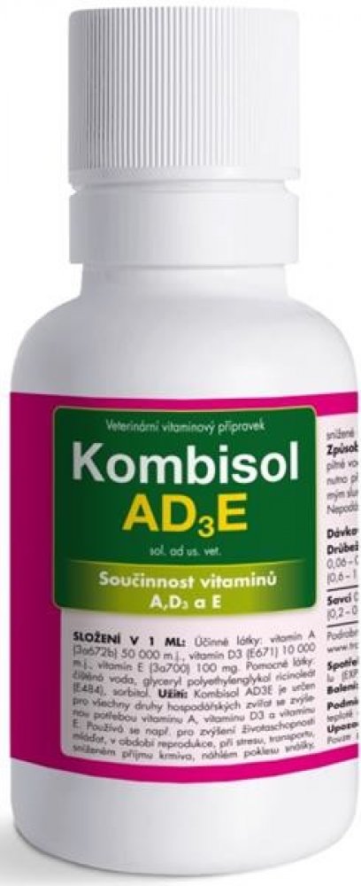 Kombisol AD3E se přidává do pitné vody nebo mléka preventivně v doporučené dávce po dobu 5 – 10 dnů. Roztok je nutno připravovat denně čerstvý, chránit před přímým slunečním světlem a co nejrychleji spotřebovat.