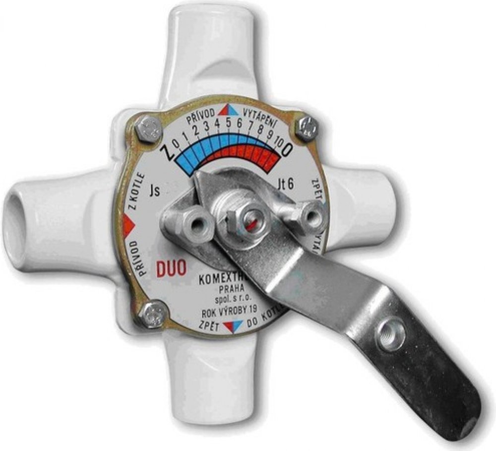Čtyřcestný směšovač DUOMIX AO ve varném provedení je určený k regulaci teplovodních topných systémů směšováním (směšovací armatura s dvojitým směšováním - část topné vody z kotle se vrací zpět do kotle). Mimo této základní regulační funkce zabraňuje nízkoteplotní korozi kotlů zvyšováním teploty vratné vody. Vnější průměr 42 mm, tloušťka 5 mm.