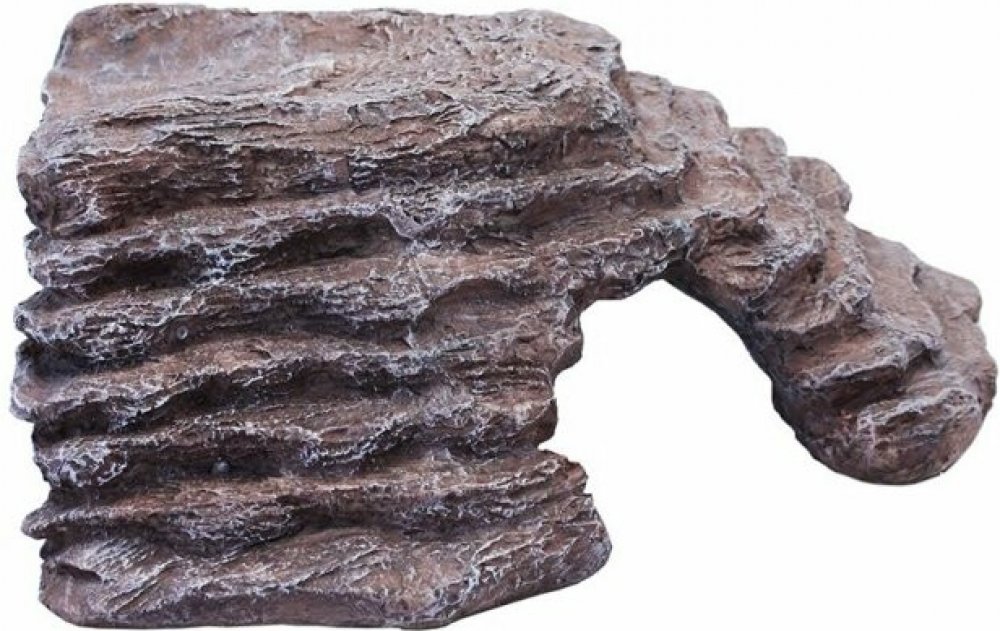 Realisticky vyhlížející imitace skalního útvaru může sloužit zároveň jako úkryt, rampa pro výlez z vody a při umístění zdroje tepla nad odpočinkovou terasu také jako vyhřívací místo. Dekoraci lze umístit přímo do nádrže s vodou: pro snadnější výstup z vody má skalka schůdkovitý tvar. Dekorace vyrobená z vysoce odolné umělé pryskyřice je hygienická a nenáročná na údržbu. TIP: Odpočinková místa s úkryty jsou pro většinu plazů a obojživelníků velice důležitá a mohou mít velký vliv na jejich zdraví a pohodu. V každém teráriu by měla být nejméně dvě: jedno v teplé a druhé v chladné části. Pro snadnější svlékání kůže se doporučuje umístit do chladnější části terária úkryt naplněný vlhkým mechem. Rozměry: 20 × 18 × 10 cm Materiál: polyresin