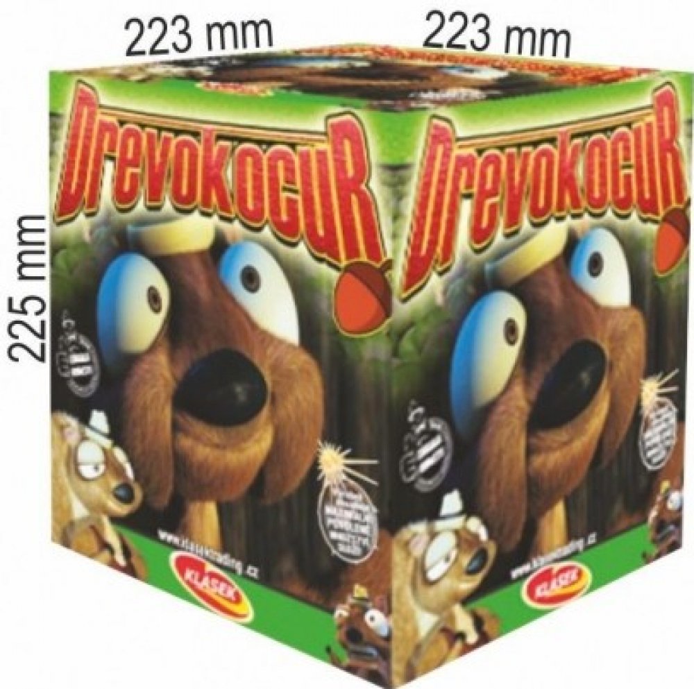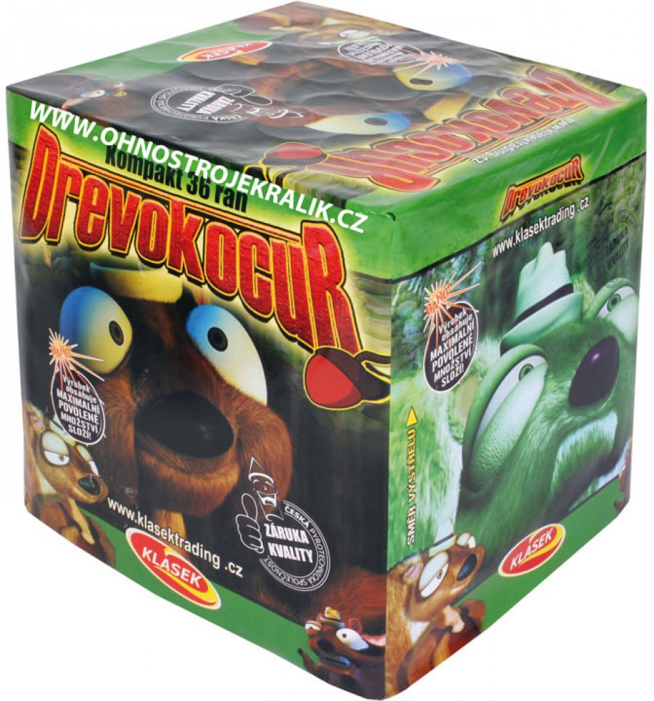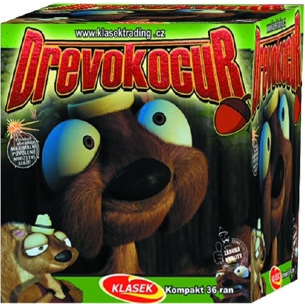 Kompakt Drevokocur ráže 30 mm se 36 ranami, se řadí do 3. kategorie. Je volně prodejný od 21 let . Kompakt Drevokocur obsahuje mix 6 efektů různých barev. Kompakt mužete shlédnout na videu.