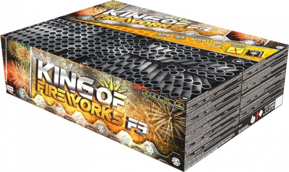 Ohňostrojový kompakt King Fireworks má tvar kvádru. Uvnitř kompaktu jsou uloženy trubice s jednotlivými ranami.