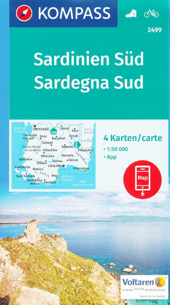Kompass Sardinia Sud (Sardínie-jih) 1:50 t. 4 mapy
