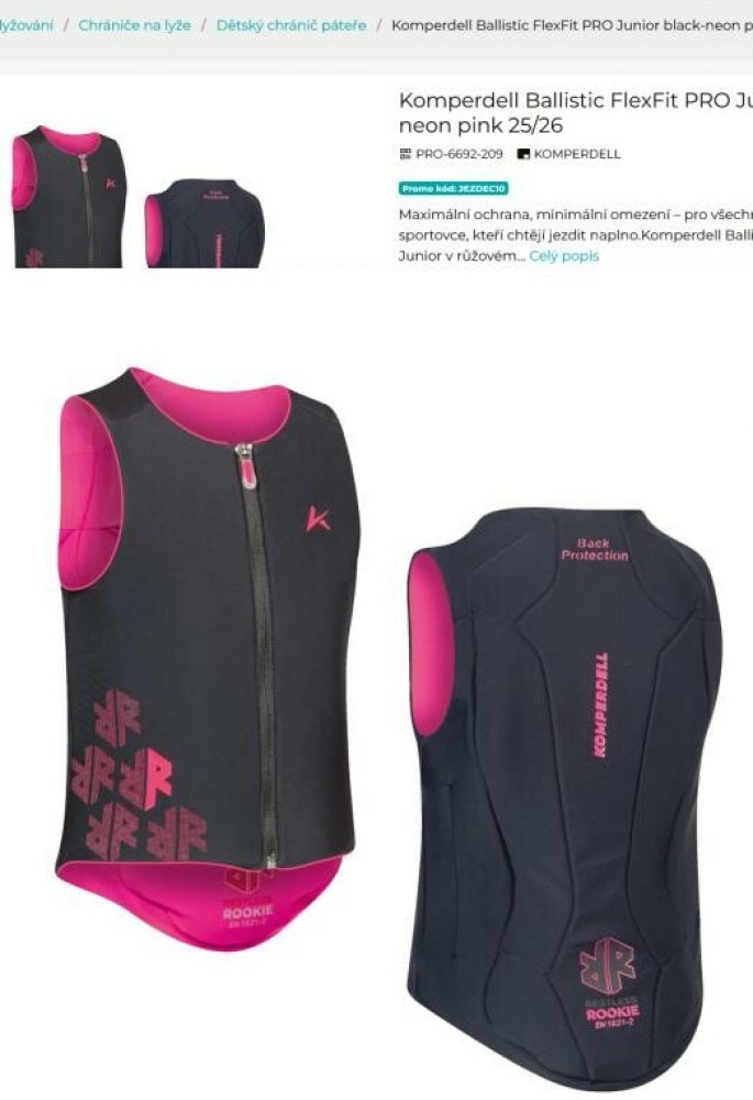 Maximální ochrana, minimální omezení – pro všechny mladé sportovce, kteří chtějí jezdit naplno.Komperdell Ballistic Flex Fit Pro Junior v růžovém provedení je špičkový páteřák, navržený speciálně pro děti a juniory, kteří se s chutí pouštějí do každého pohybu – ať už na koni, nebo na lyžích. Díky vícevrstvému chrániči Cross 8.0 z adaptivní pěny s dvojitou hustotou splňuje tento model přísnou normu...