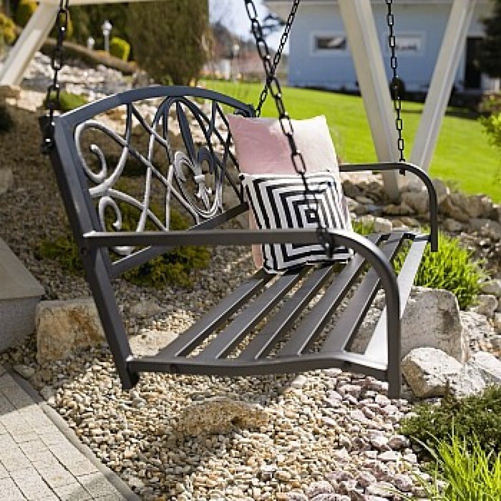 Zahradní závěsná houpačka ABEA je vyrobená z černé oceli.