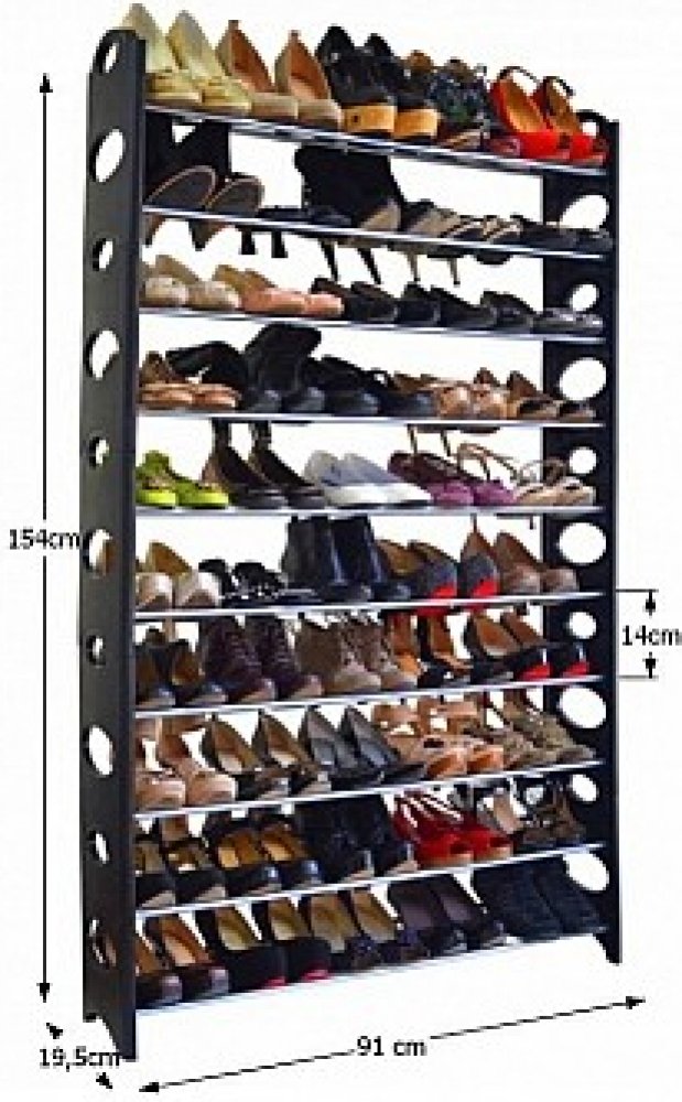 Botník obsahuje 10 řad, vhodných pro 50 párů bot s maximální nosností 32 kg.