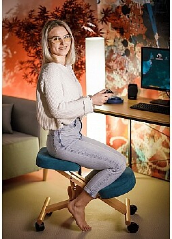 Klekačka FLONET je ideální volbou pro zdravé sezení u pracovního nebo psacího stolu. Ergonomická konstrukce podporuje správné držení těla, ulevuje páteři a zlepšuje celkové držení při dlouhodobém sezení. Sedák je výškově nastavitelný v rozmezí 52–72 cm a klekačka je vybavena kolečky pro snadnou manipulaci. Petrolejové čalounění z odolné látky (80 000 Martindale) a pevná dřevěná konstrukce v dekoru buk zajišťují komfort, styl a dlouhou životnost.