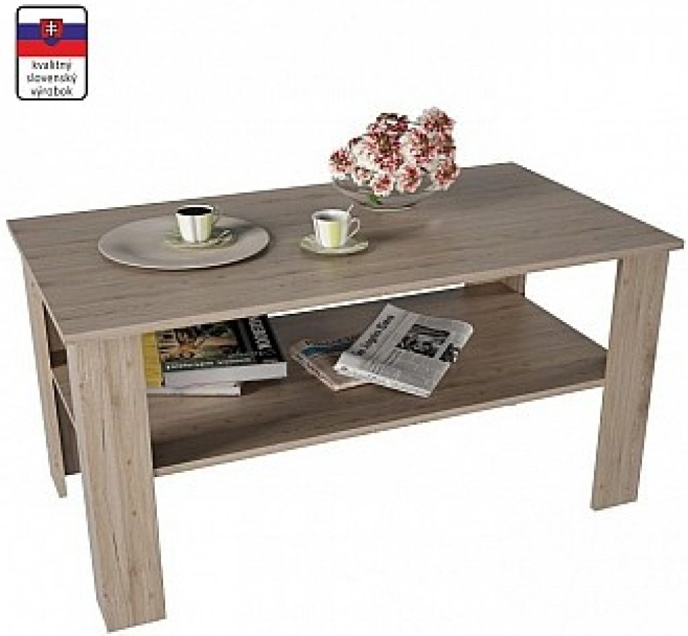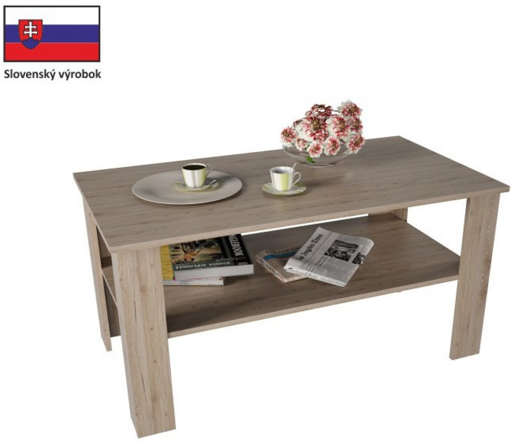 Praktický konferenční stolek v dezénu dub san remo z lamina o síle 16mm. Stolek kvalitní slovenské výroby s velkou odkládací plochou nabízíme i v dalších dezénech (viz související produkty). Dodáváme v demontu. Rozměry: - šířka 110 cm - hloubka 60 cm - výška 55 cm