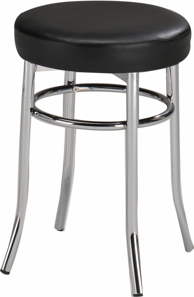 Praktický taburet, který šikovně zastoupí jídelní židli. Překvapí svými vlastnosti. Kovová konstrukce v barvě chróm je stabilní a pevná. Sedací část je čalouněná černou ekokůži. Taburet je vhodný do moderních, klasických a také minimalistických interiérů. Dodávané v demontu.