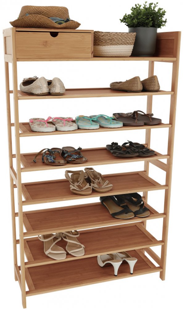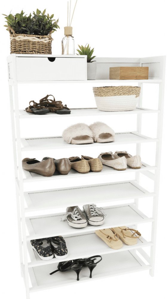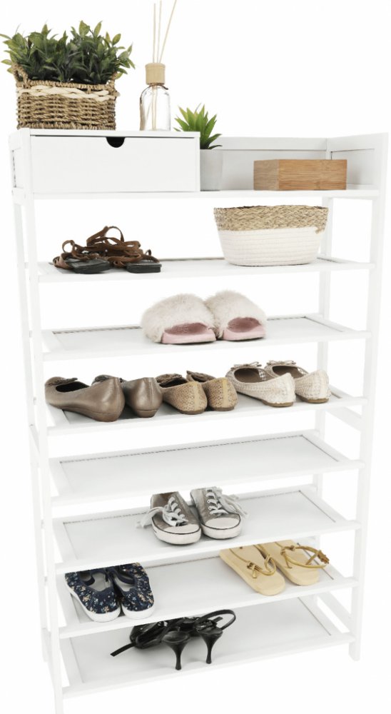 - 7 otevřených polic + zásuvka – dostatek místa pro obuv i drobnosti