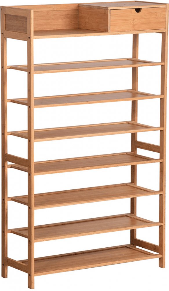 Vyroben z lakovaného bambusu, který je známý svou pevností, odolností vůči vlhkosti a ekologickými vlastnostmi. Díky nosnosti až 50 kg při rovnoměrném zatížení je botník pevný a stabilní. Kompaktní rozměry a otevřený vzdušný design jej předurčují k použití nejen v předsíni, ale i v šatně nebo technické místnosti.