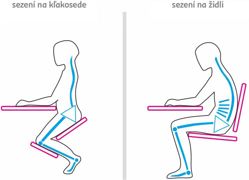Balanční klekačka podpoří správnou pozici sedu, která napomůže zmírnění bolesti zad. Správným držením těla se snižuje napětí krčních svalů a zabraňuje tak bolesti hlavy z přetížení svalů.