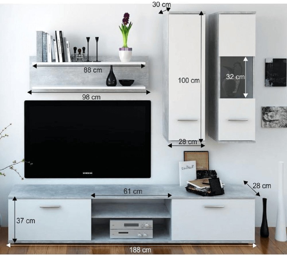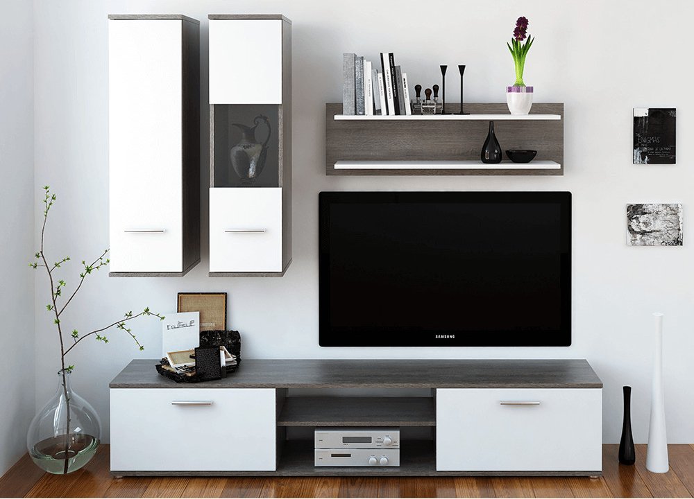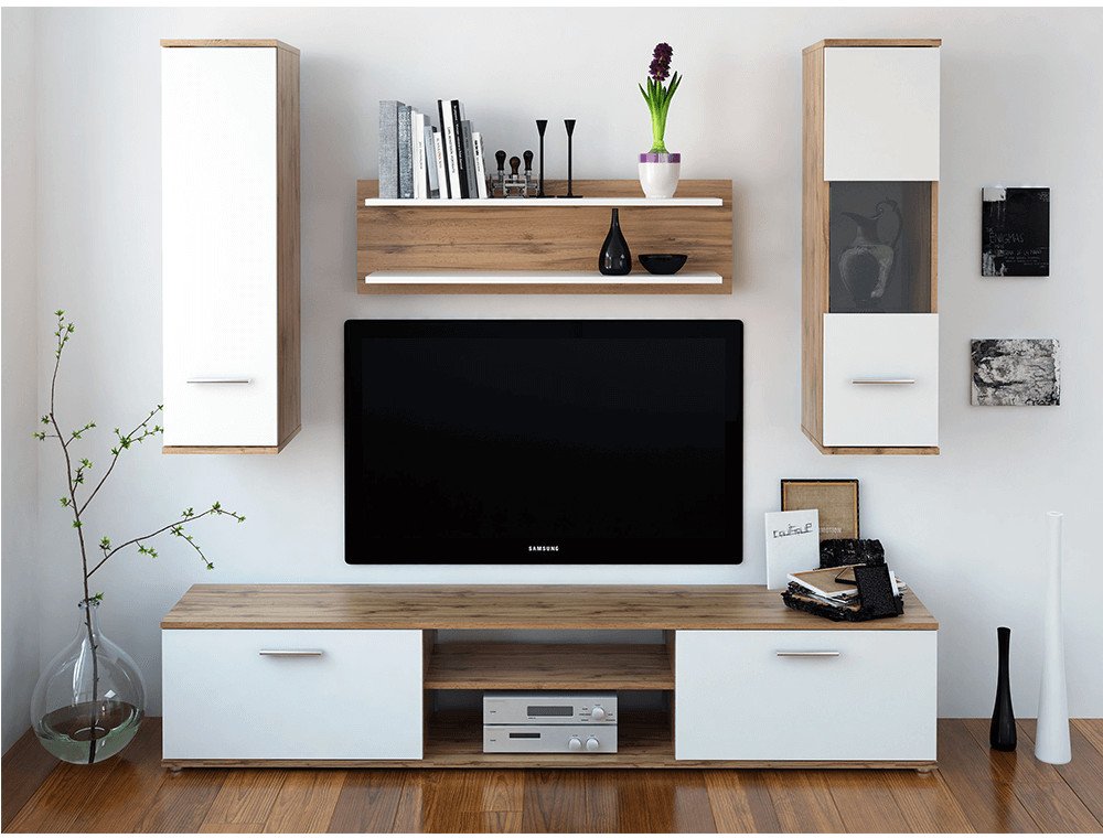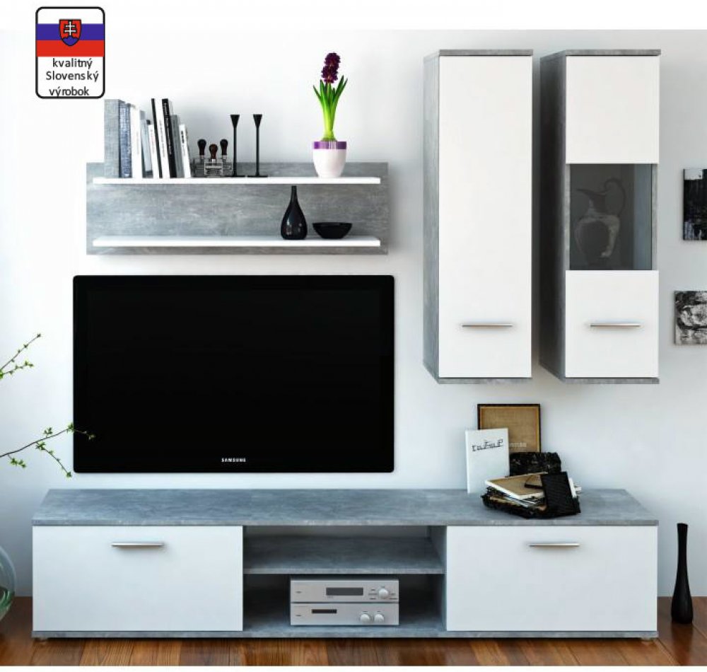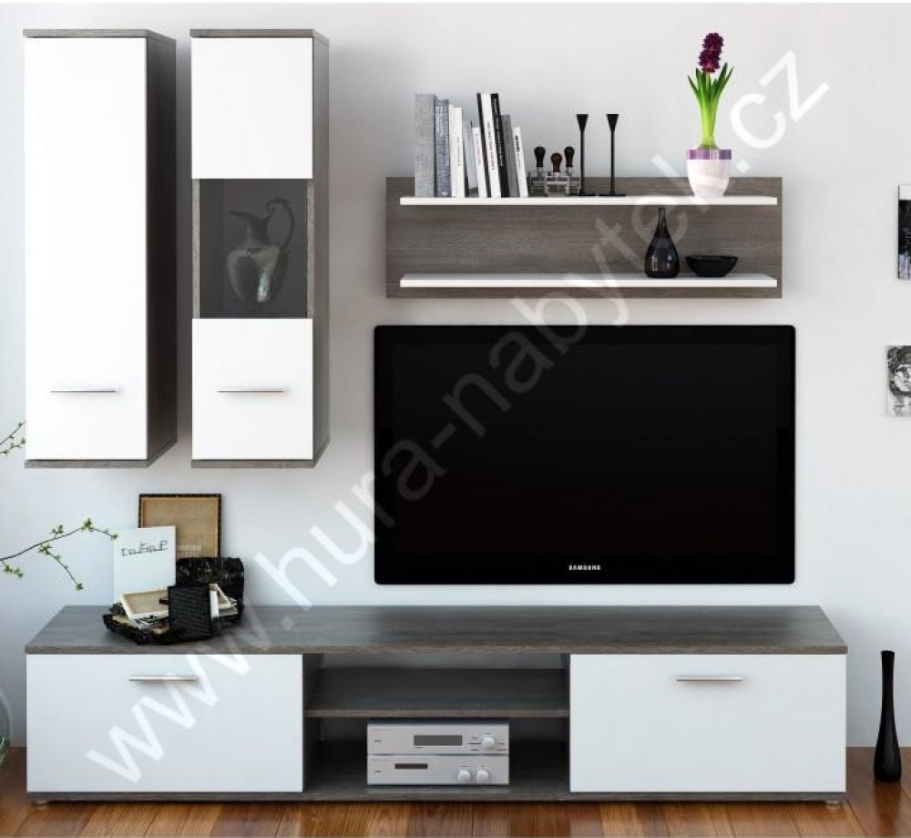 Skládá se z prodlouženého RTV stolku, dvojpolice a dvou závěsných skříněk.