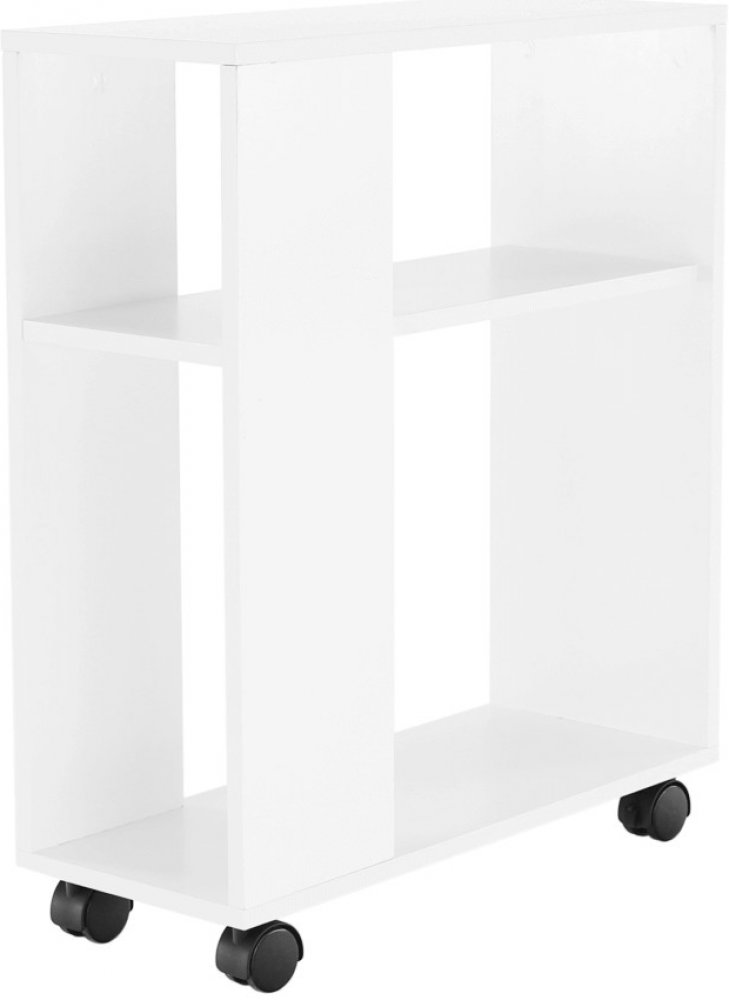 Praktický příruční stolek na kolečkách, se kterým se velmi snadno manipuluje. Stolek je vyroben v bílém barevném provedení.