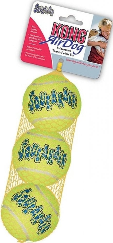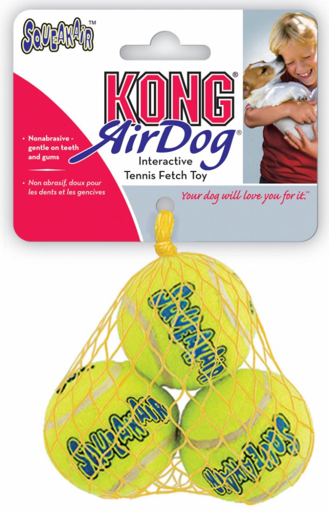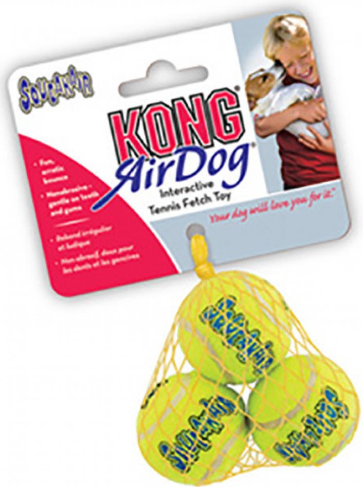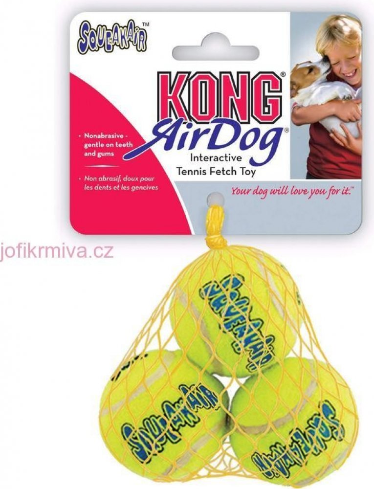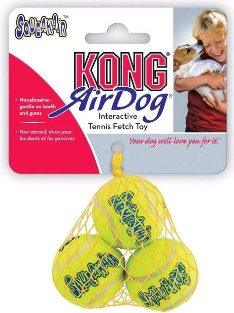 Jedna z nejoblíbenějších hraček u psů malých plemen – tři malé tenisové míčky KONG SQUEAKAIR, které navíc pískají.