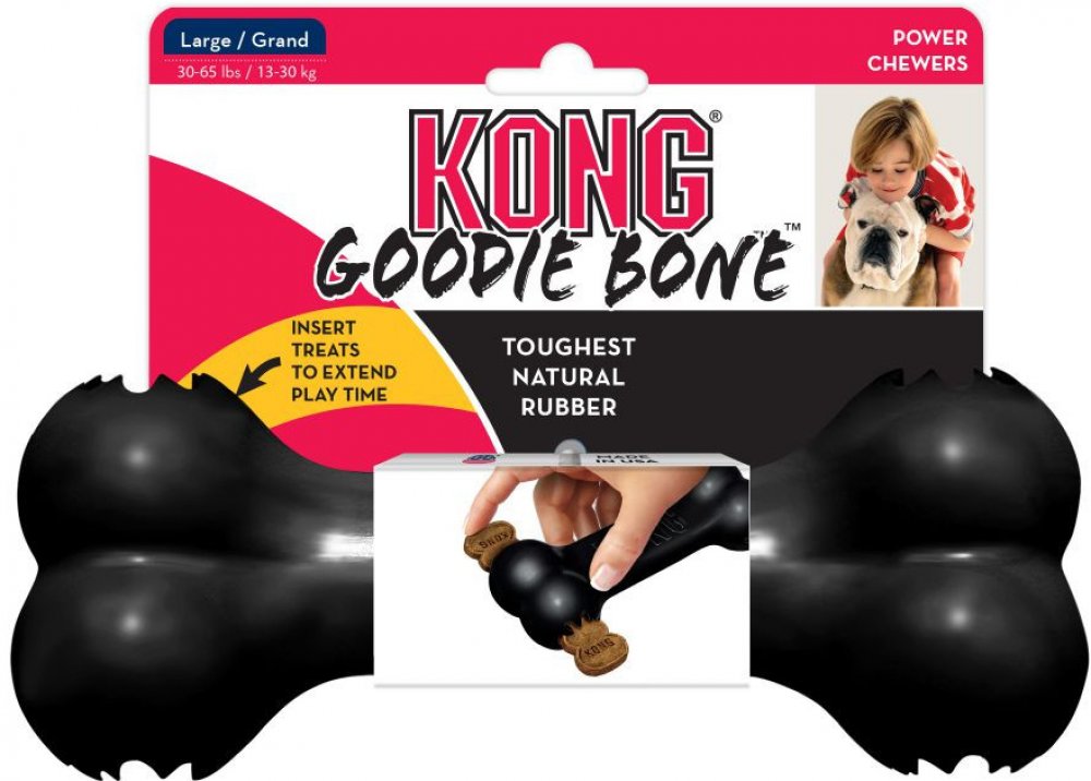 Stejně jako všechny hračky Kong, i tato může být plněna pamlsky a jídlem a poskytnout tak zábavnou výzvu pro vašeho psa. Kousací tyčinky vsunuté do kosti Goodie Bone prodlouží psovi jeho snažení :o)