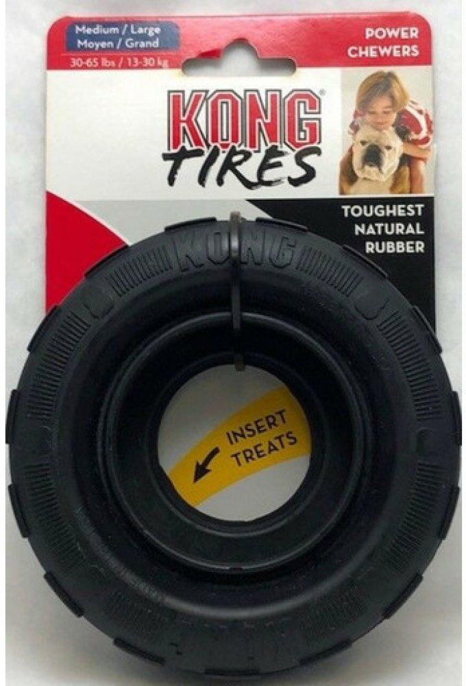 Hračka KONG Tires Pneumatika je hračka pro psy ze speciální odolné gumy. Je vyrobena z ultra elastického materiálu (čistě přírodního kaučuku), pomáhá čistit chrup a masírovat dásně. Speciální tvar zajišťuje při dopadu nepravidelný odraz. Hračku lze plnit pamlsky nebo pastou a zvýšit tak zájem psa o hračku. KONG je účinný výcvikový prostředek, který vyléčí mnohé nežádoucí chování: kousání nábytku, ...